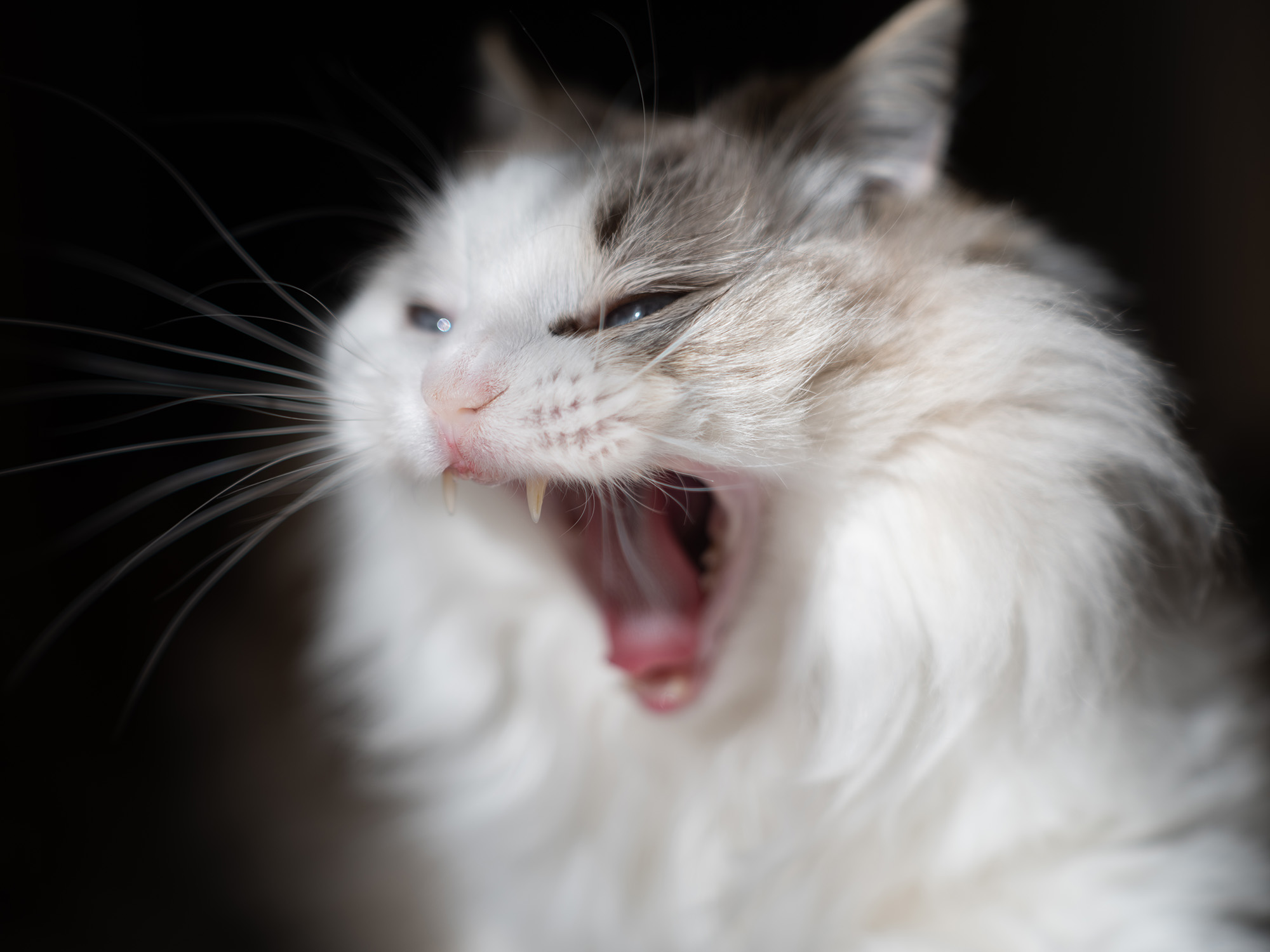 Denna snälla och lugna lilla hårboll gäspade precis när jag skulle ta en bild och rent instinktivt så tryckte jag av. Bilden var egentligen en testbild tagen med en kring 60 år gammal optik, då självklart med manuell fokusering, och därför var det extra roligt att skärpan satt där den skulle.