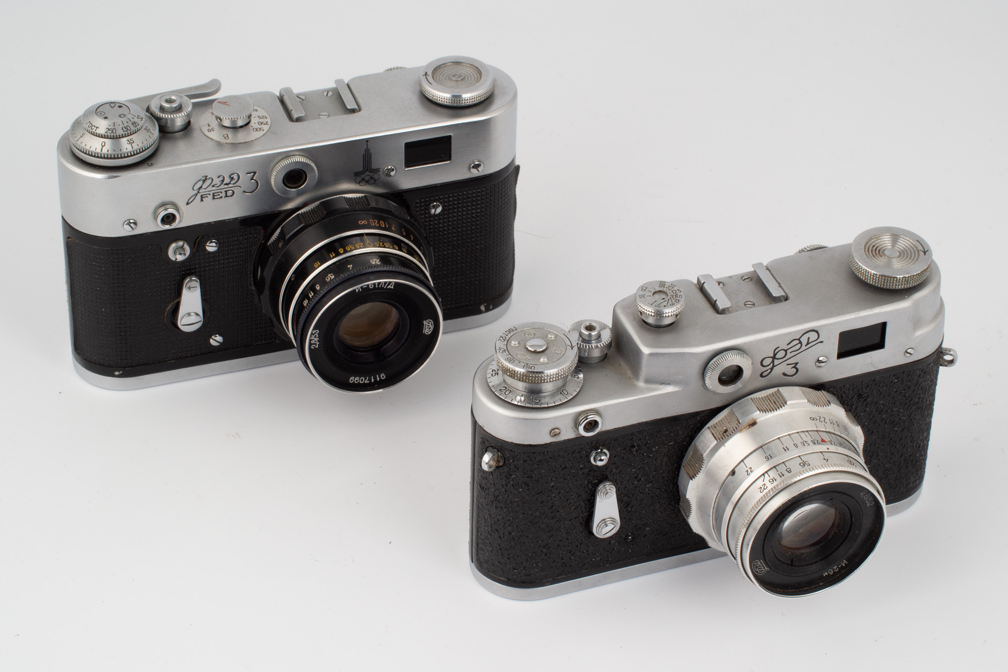 1955 så producerade fabriken en stor mängd kameror varav många bar namnet Leica: Dessa kameror såg likadana ut som Leica men var inte ens i närheten samma kvalitet eller samma precision. Det är också olika avtryckare och olika sökarfönster. Mätsökarindekeringen är spetsig till skillnad från Leicas runda. FED har också ett gap i tillbehörsskon på vänster sida. FED namngav helt skrupelfritt vissa Industar-objektiv som Elmar. Dessa ukrainska Leicakopior kan vara kuriosa i en samling, såvida inte köparen betalat för mycket i tron att det verkligen är en Leica.