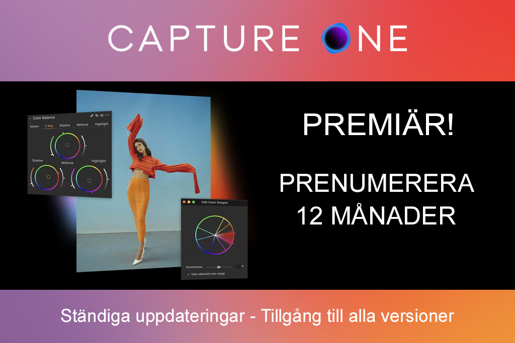 Som kund hos oss har du nu möjlighet att välja mellan Capture One engångsköps-modellen eller ett Capture One förbetalt 12-månadersabonnemang.