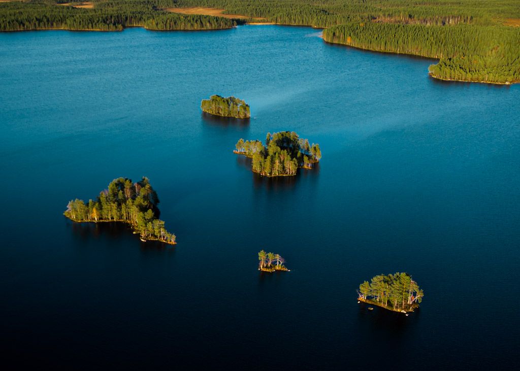 Jag var ute och flög en ovanligt fin eftermiddag i oktober och fick syn på en ordentligt trädklädd ögrupp i mitten av en sjö. De är så pass isolerade från fastlandet att det är lätt att tänka sig att det inte försiggår något där men det kan säkert vara så att några mindre djur eller om inte annat insekter kallar det för sitt hem.