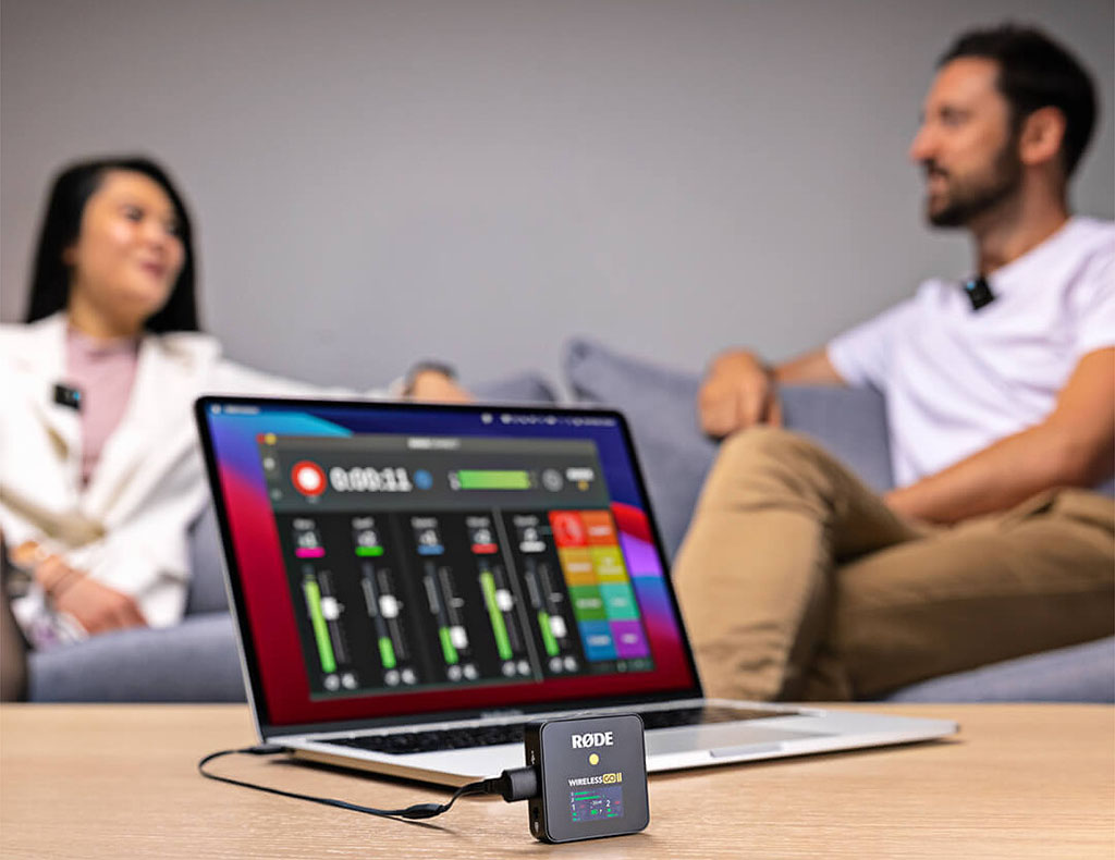 Röde Wireless Go II är mycket enkelt att hantera. Sändar- och mottagarenheter är parkopplade vid leverans och kan användas direkt ur kartongen. De flesta grundläggande inställningar görs snabbt och enkelt via mottagarens gränssnitt/skärm.