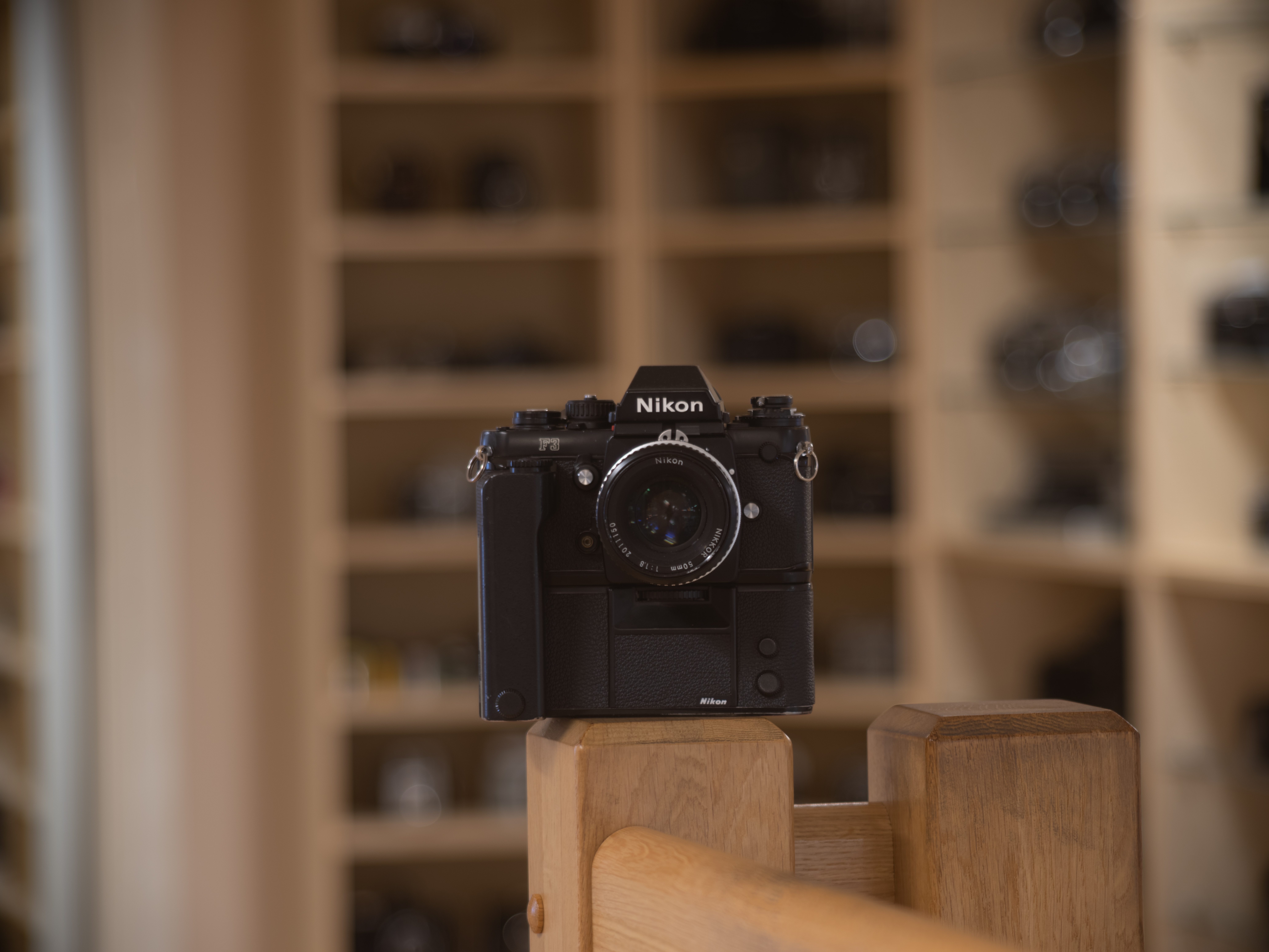På f/2,8 ser vi tydligt bokehbubblorna. Ingen skärpa någonstans egentligen. Skärpan är inställd på Nikon-loggan.