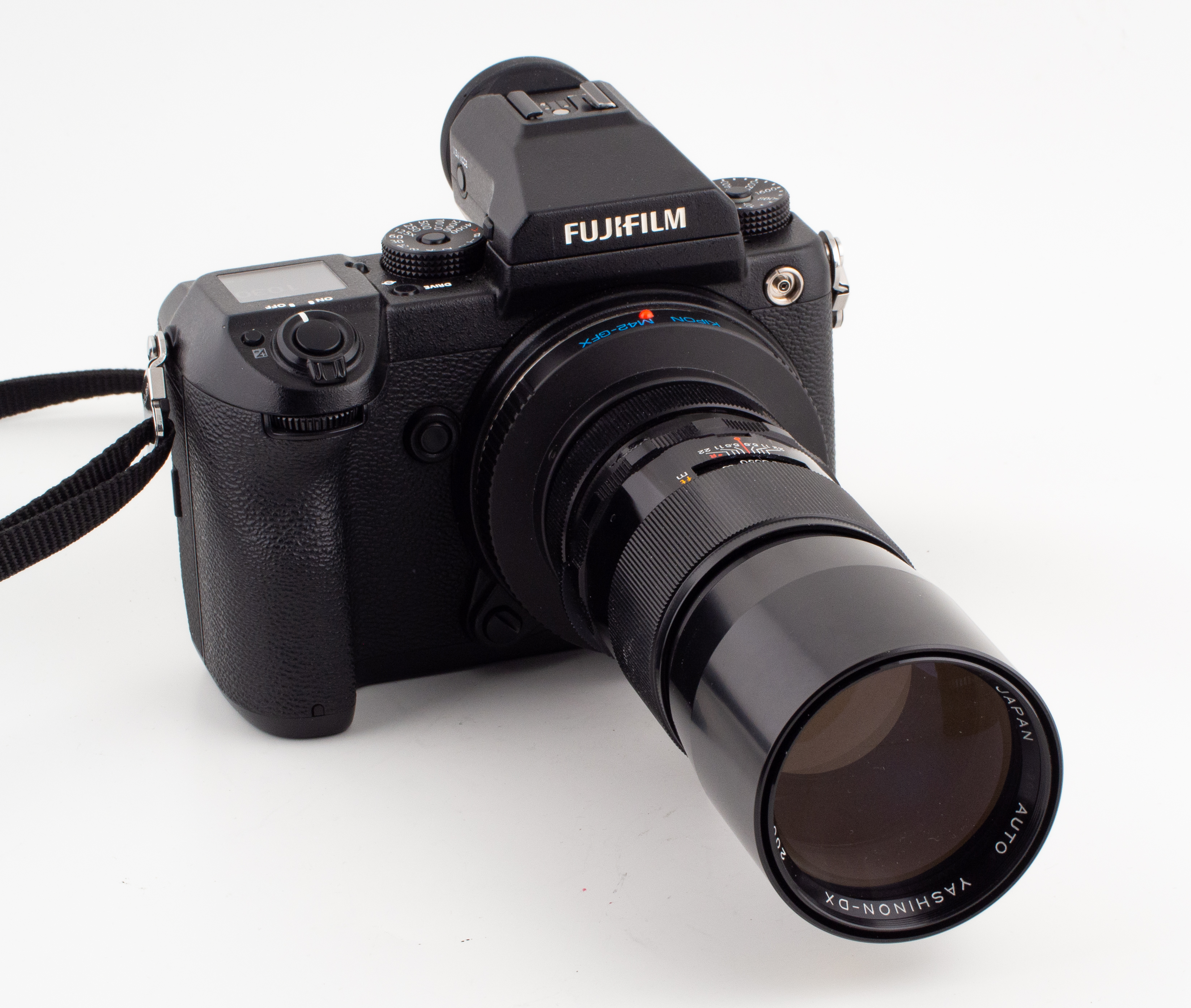 Här har jag satt den på en Fujifilm GFX via en Kipon adapter. Alla testbilder är orättvist tagna på mellanformat. Vill du se hur bilderna blir i småbildsformat, eller fullformat som det ofta kallas idag, så beskär du ner bilderna till 6768x4512 pixel. Inte ändra storlek på bilden utan ändra storlek på arbetsytan. Enda redigeringen från RAW till jpg var vinjetteringen.