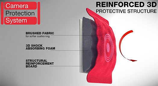 Absorberar stötar och skyddar kameran med Camera Protection System (CPS)