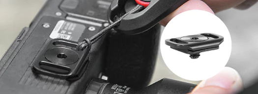 Medföljande fäste/stativplatta (Arca-kompatibel) som gör att du kan fästa ena änden av remmen under kameran (t ex praktiskt om du har DSLR med stor teleoptik). Samtidigt kan du sedan enkelt fästa kameran på stativ, utan att behöva ta bort remmens snabbfäste först