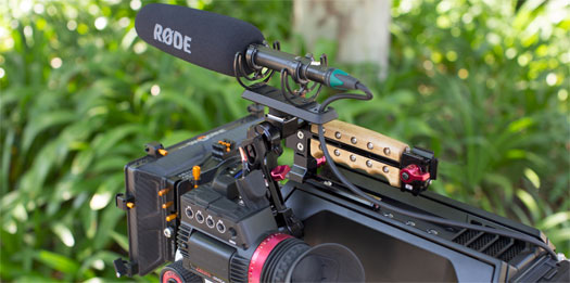 En stabil mikrofonhållare med Rycote Lyra-upphängning, vilket gör att mikrofonen effektivt avdämpas från störande stomljud från kameran.