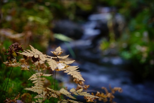 Bländare f/11, närbild på blomblad i skala 2:1 (APS-C-format).