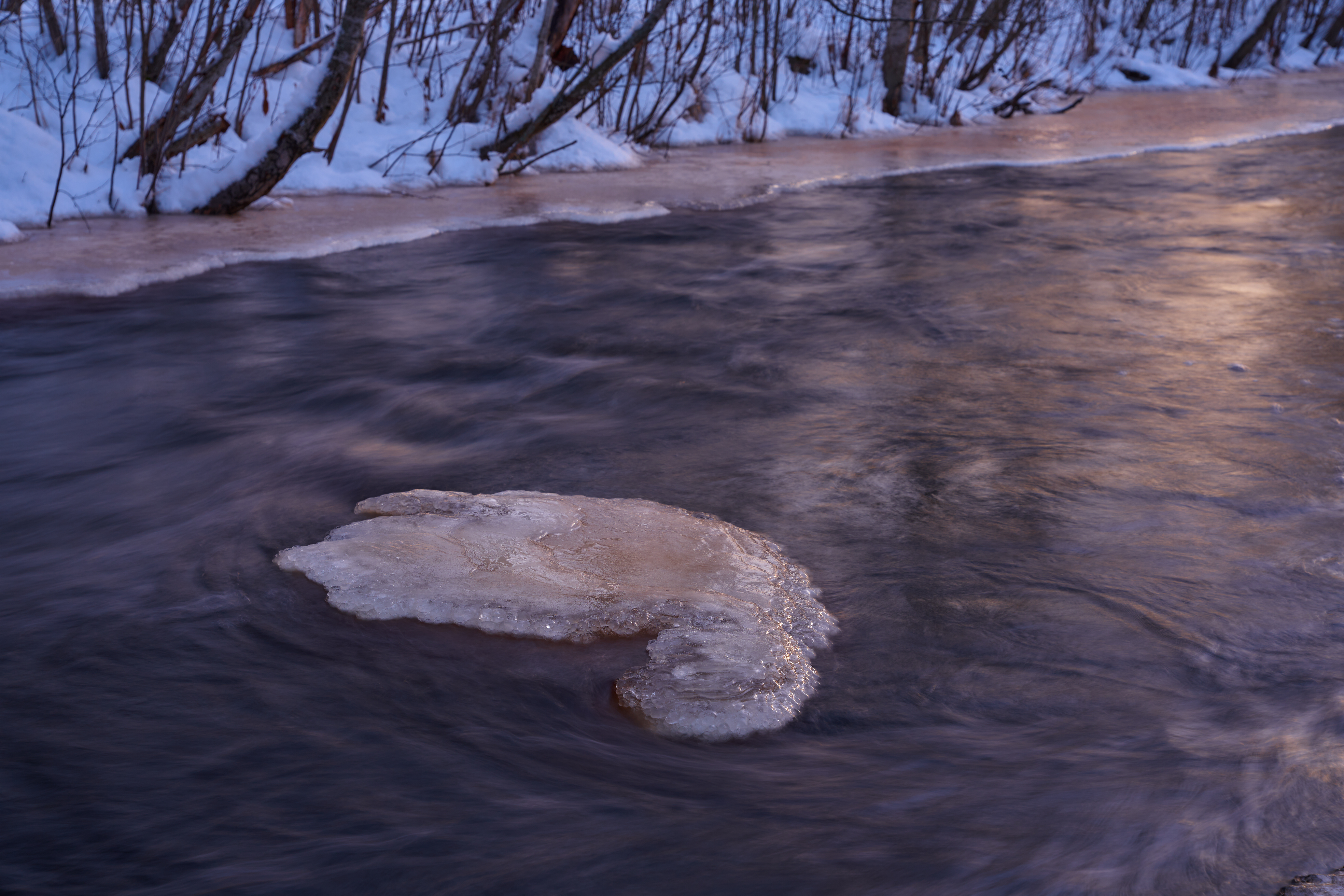 Brännvidd 55, bländare f/5,6. Fokus på isformationen.