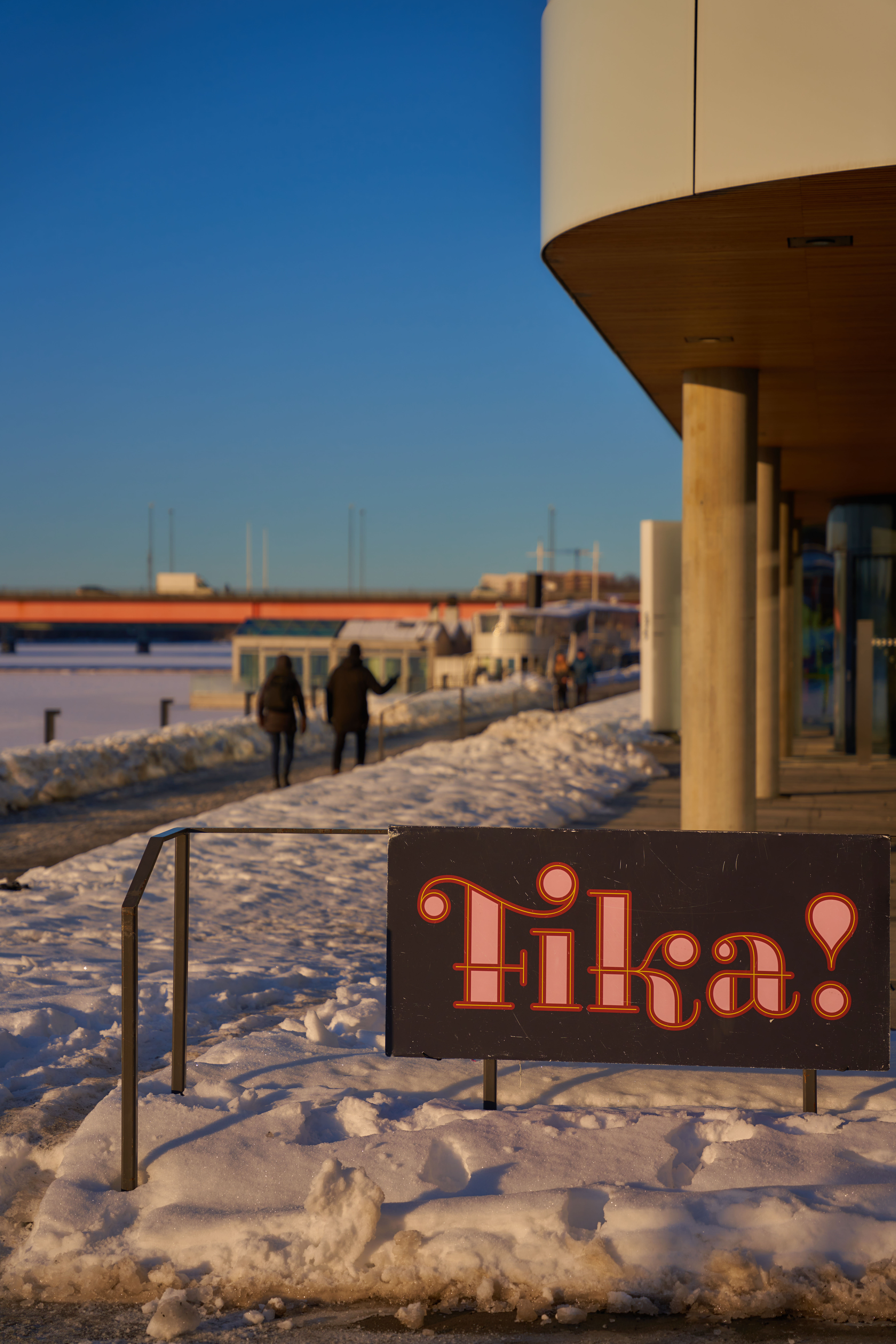 Brännvidd 70mm, bländare f/2,8. Fokus på fikaskylten i förgrunden.