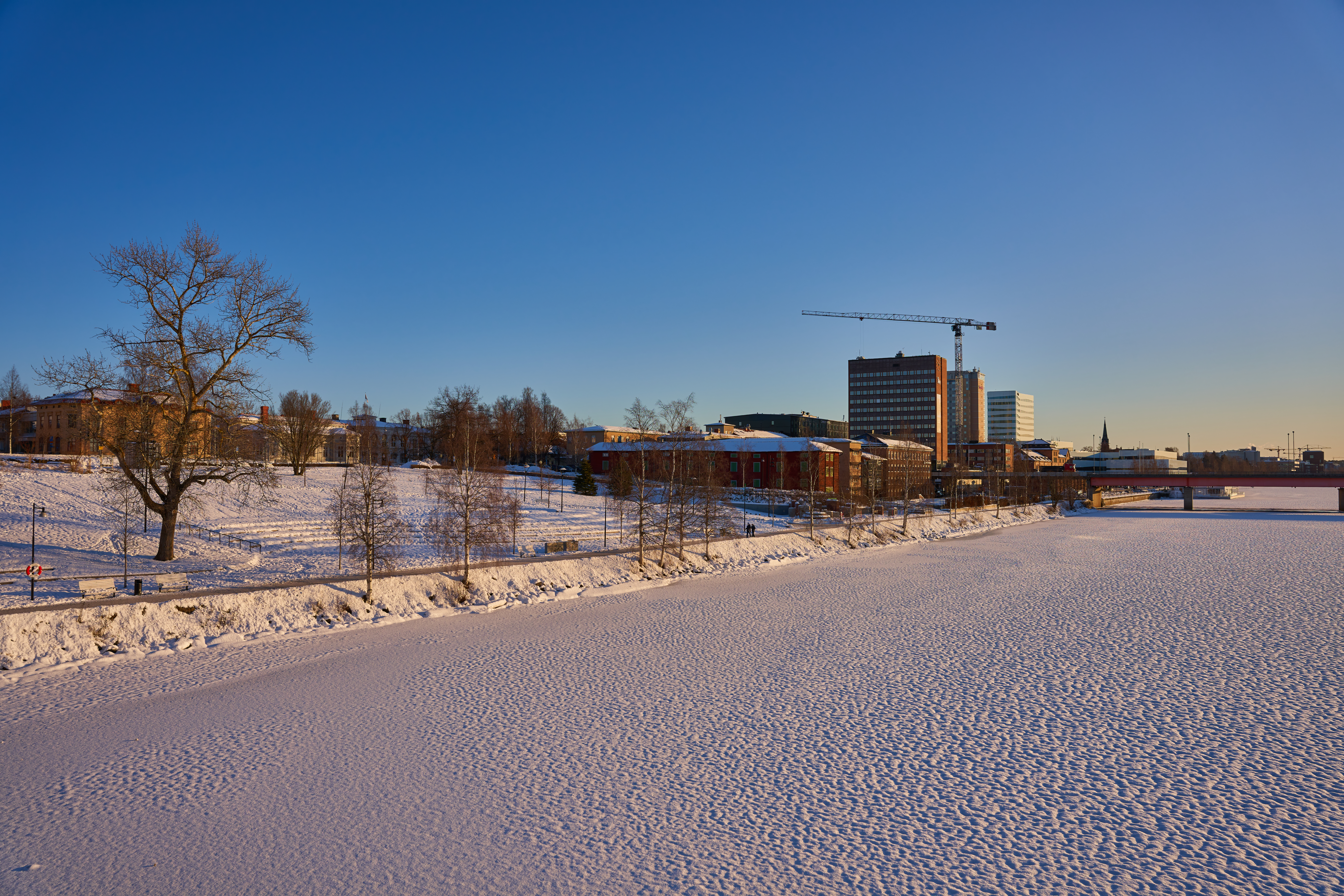 Brännvidd 70mm, bländare f/5,6. Fokus på husen i bakgrunden.