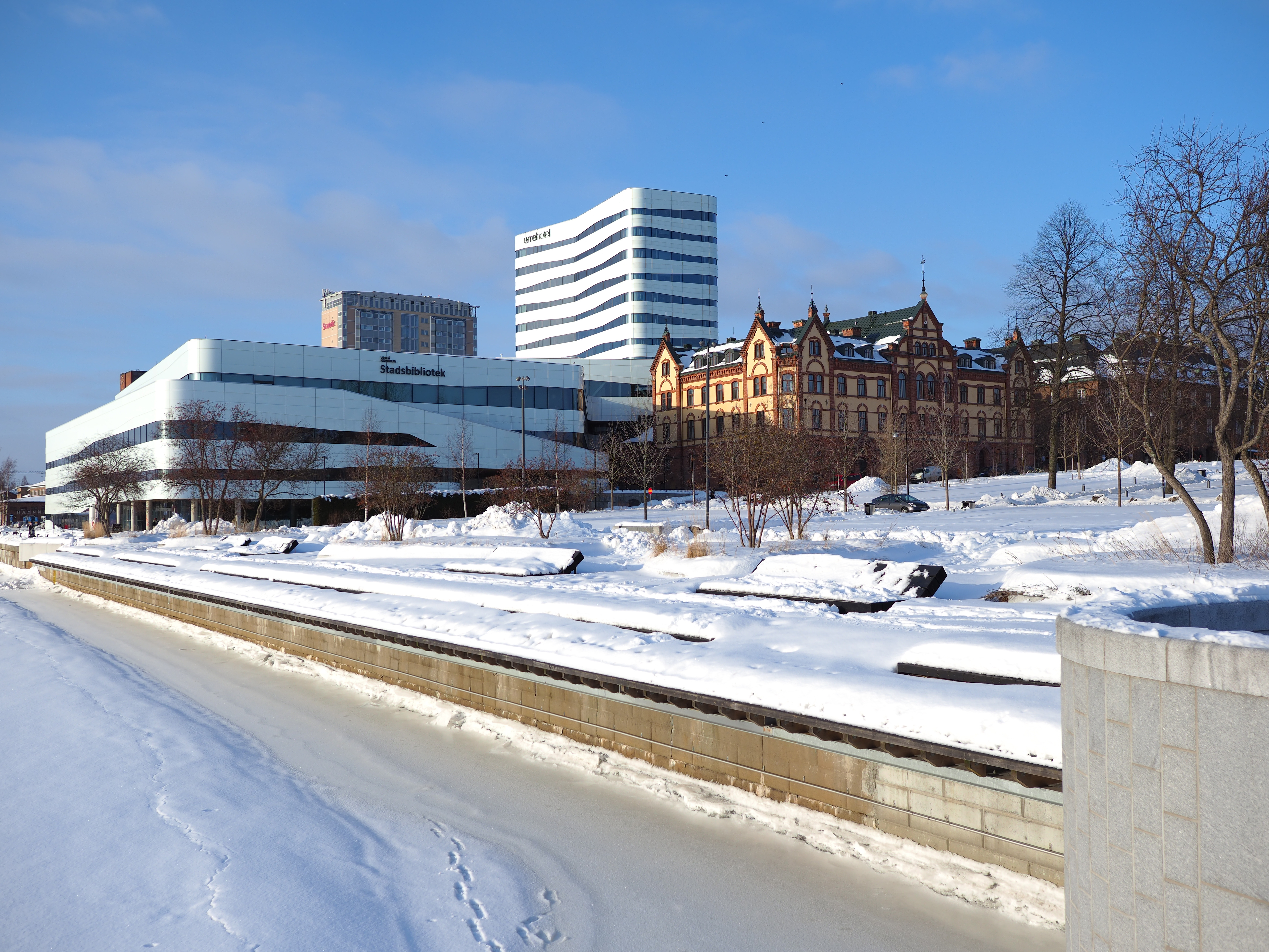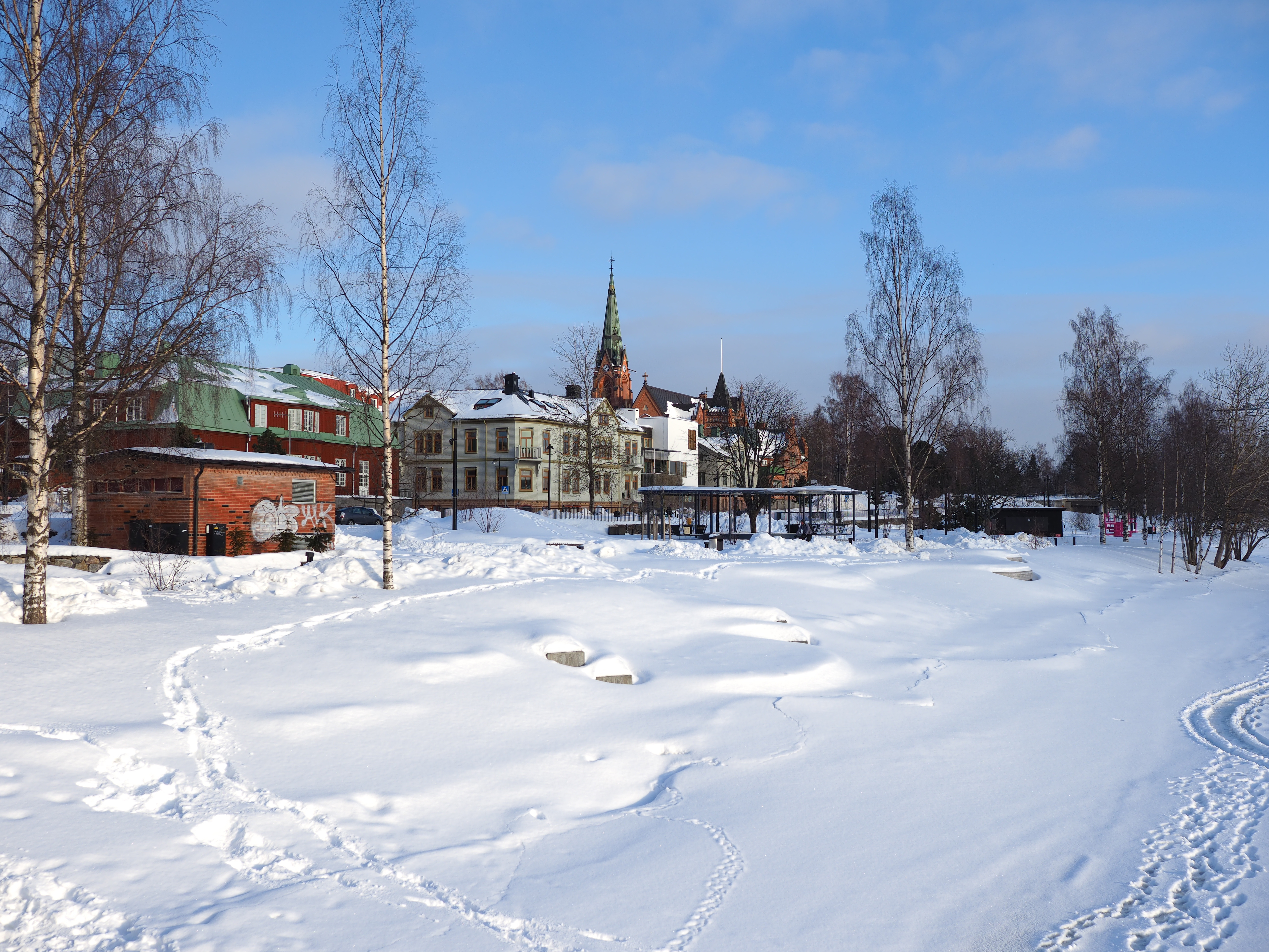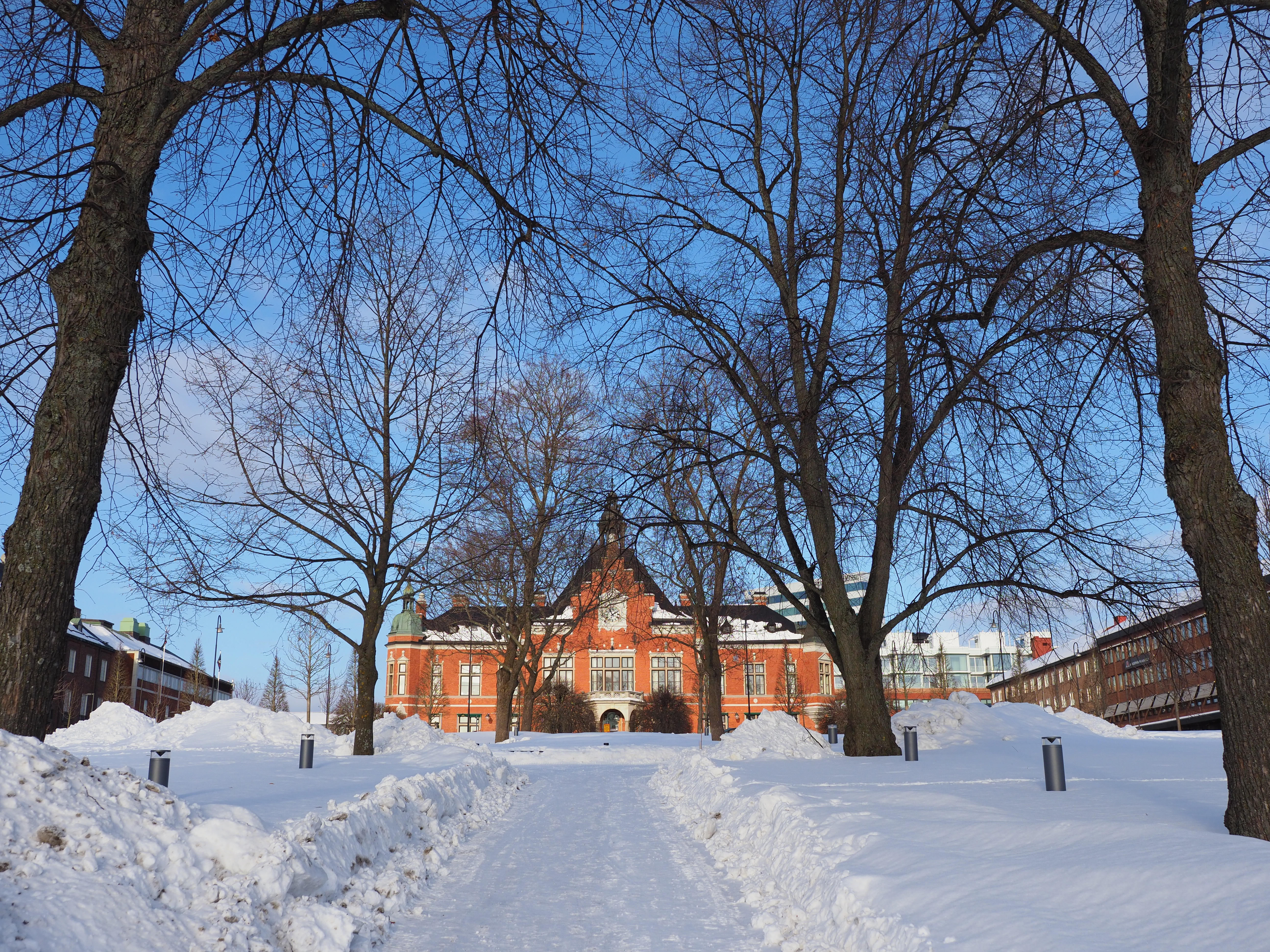 Bländare f/3,5 (prickarna på himlen beror inte på damm på sensorn, det är snö som faller).